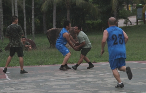 深海籃球隊(duì)與武警三亞支隊(duì)特勤中隊(duì)舉行慶”八一”籃球賽