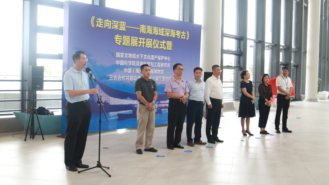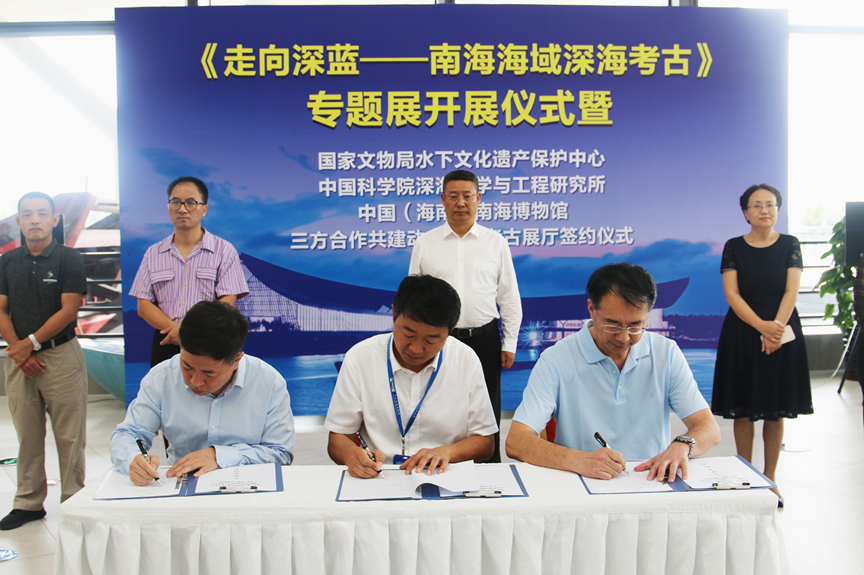 2019322日上午,《走向深藍——南海海域深??脊拧穼n}展開展儀式暨國家文物局水下文化遺產(chǎn)保護中心、中國科學院深??茖W與工程研究所、中國(海南)南海博物館三方合作共建動態(tài)水下考古展廳簽約儀式在中國(海南)南海博物館順利舉行。