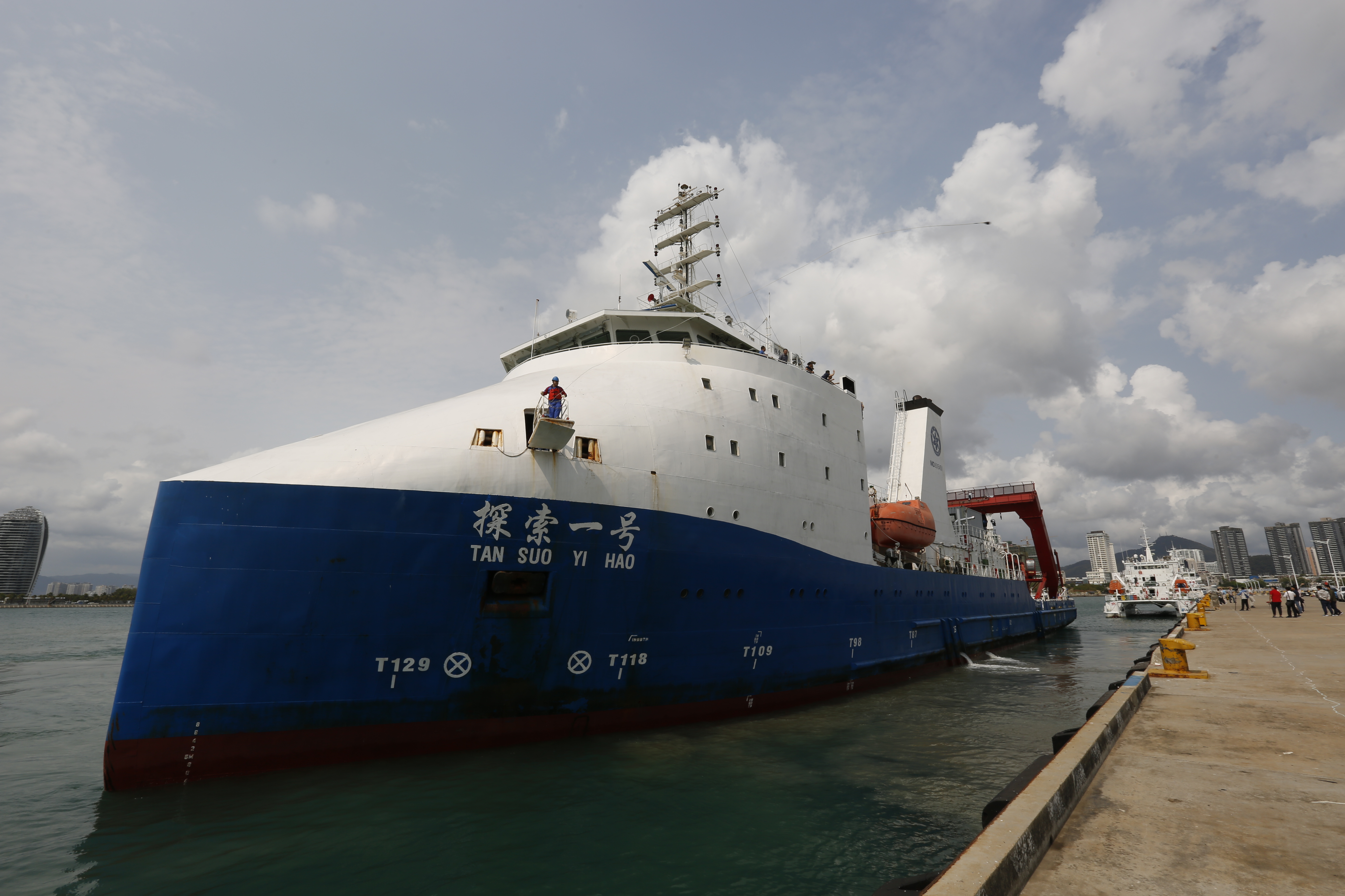 緩緩停靠碼頭的“探索一號”船
