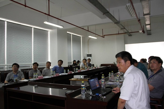 代亮首先代表三亞深海所對黃寧生院長一行表示歡迎,同時對廣州分院在籌建工作上給予的支持和指導表示感謝。隨后,代亮從建所背景、籌建方案、籌建工作進展、2013年的主要工作四個方面詳細介紹了三亞深海所籌建工作開展情況??偣こ處煆埌鹤髁岁P于組織凝練重大項目的專題匯報。深??茖W研究部研究員李松海向分院領導匯報了海洋哺乳動物與海洋生物聲學實驗室建設情況。