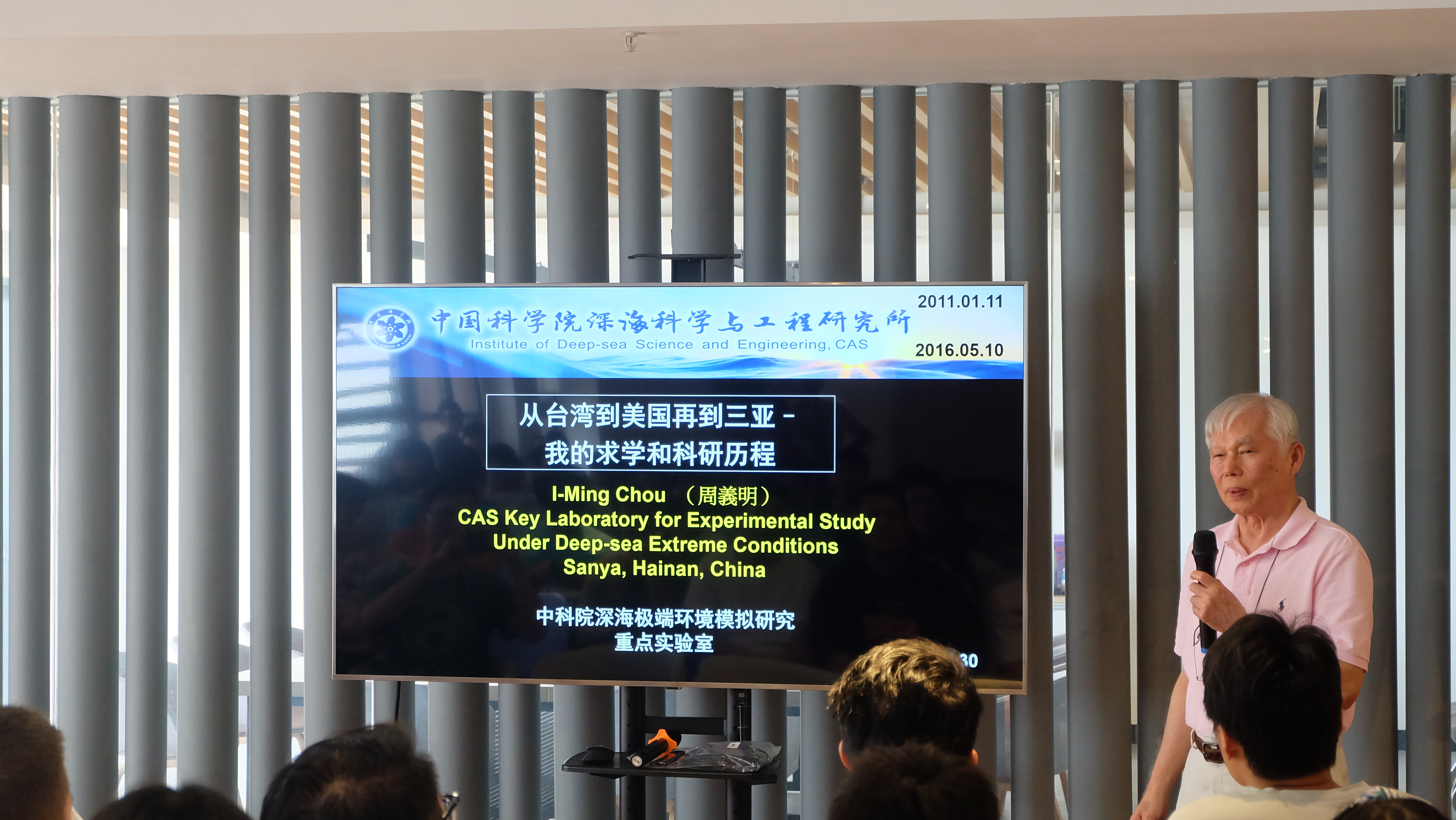 從美國地質調查局榮譽退休后,周義明來到三亞加入了中科院深海所深海極端環境模擬研究實驗室。他講述了實驗室的發展歷程和現狀,介紹了數十年來實驗地球化學與流體包裹體研究的進展,涵蓋目前實驗室已有的多種高溫高壓模擬實驗裝置與顯微拉曼分析技術,同時也對未來的研究方向進行了展望,強調了透視性反應腔中原位氧逸度控制及測量技術的開發和應用在未來實驗地球化學研究中重要性和稀缺性。
