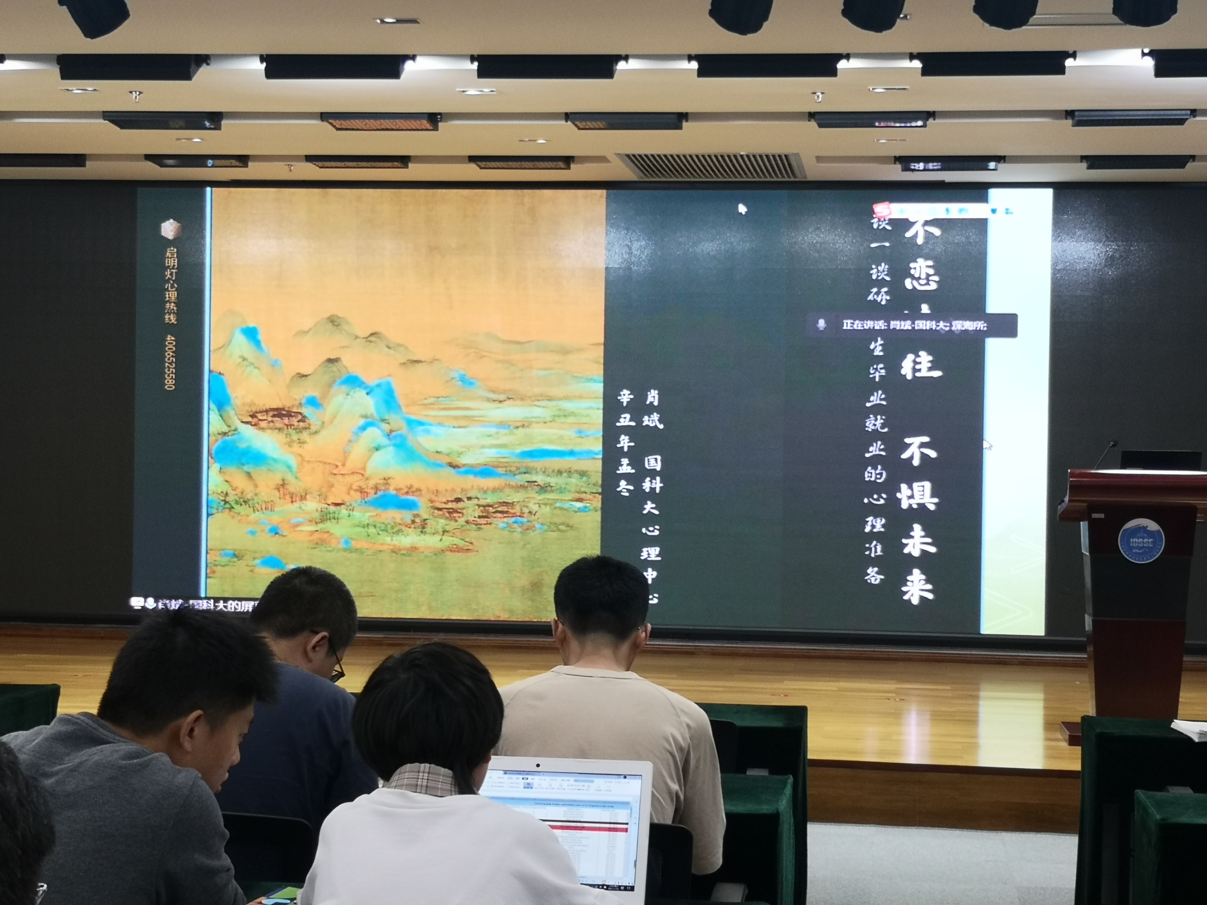 肖斌在講座中為大家分析了研究生畢業(yè)就業(yè)時常見的焦慮原因,例如信息網(wǎng)絡(luò)的全覆蓋、學(xué)生與社會的脫節(jié)、就業(yè)的艱難選擇、與曾經(jīng)的同學(xué)格格不入、理想與現(xiàn)實的落差等,幫助我們從古代詩詞與中華文化中尋求解決之道,包括全方位認識自己、學(xué)會換角度看待問題、學(xué)會脫離舒適區(qū)、以平常心看待失敗與遺憾等。肖斌的講座是潤物細無聲的引導(dǎo)啟發(fā),為同學(xué)們的畢業(yè)就業(yè)做了一次極好的心理建設(shè)。
