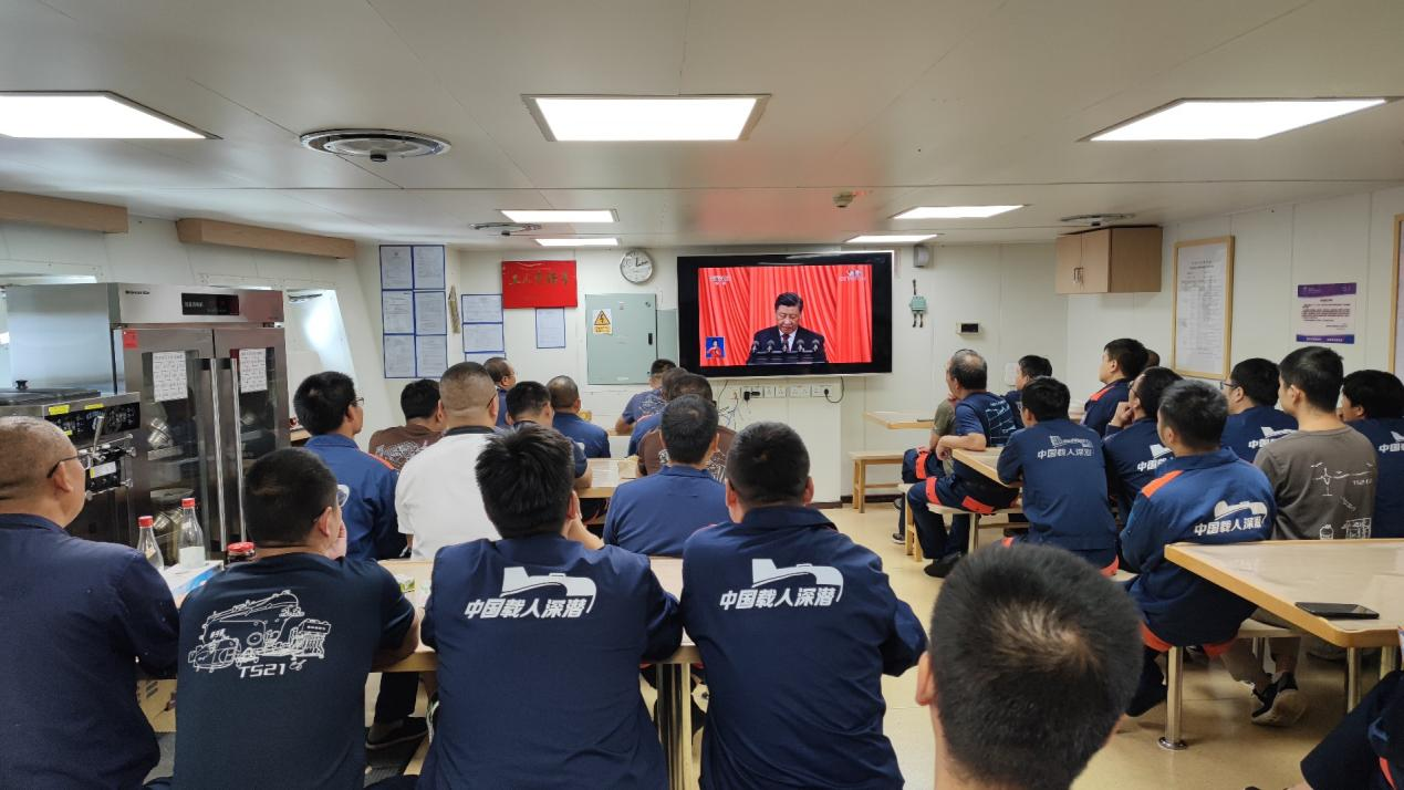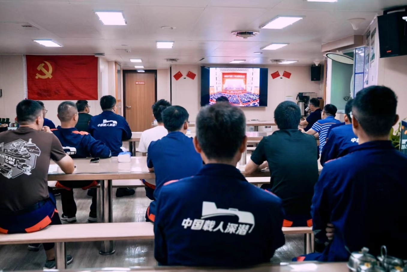 新思想引領(lǐng)新時(shí)代,新使命開(kāi)啟新征程。10月16日上午10時(shí),中國(guó)共產(chǎn)黨第二十次全國(guó)代表大會(huì)在北京人民大會(huì)堂開(kāi)幕。此次會(huì)議是在全黨全國(guó)各族人民邁上全面建設(shè)社會(huì)主義現(xiàn)代化國(guó)家新征程、向第二個(gè)百年奮斗目標(biāo)進(jìn)軍的關(guān)鍵時(shí)刻召開(kāi)的一次十分重要的大會(huì),萬(wàn)眾聚焦,舉世矚目。深海所組織黨員、群眾分別在科研園區(qū)報(bào)告廳、“探索一號(hào)”、“探索二號(hào)”科考船集中收看黨的二十大開(kāi)幕會(huì)盛況,認(rèn)真聆聽(tīng)習(xí)近平總書(shū)記代表第十九屆中央委員會(huì)向黨的二十大作的報(bào)告。?