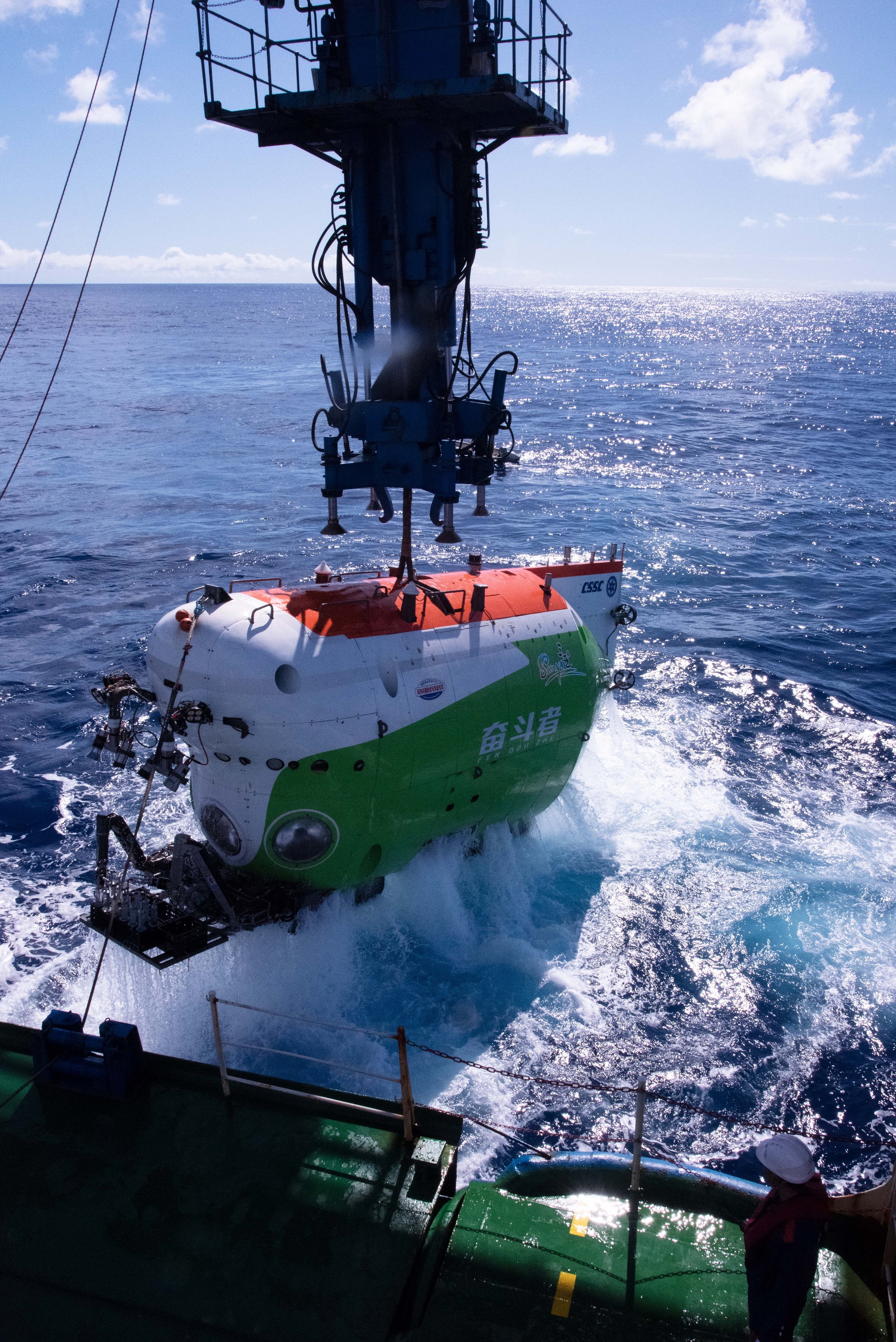 正在執行回收任務的“奮斗者”號載人潛水器