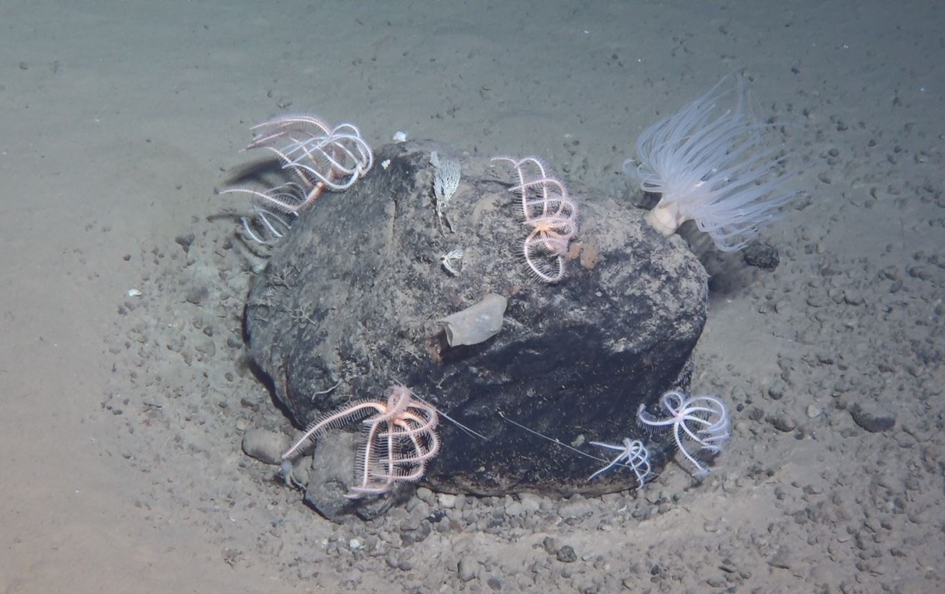 附著多種生物的巖石-水深約6000米