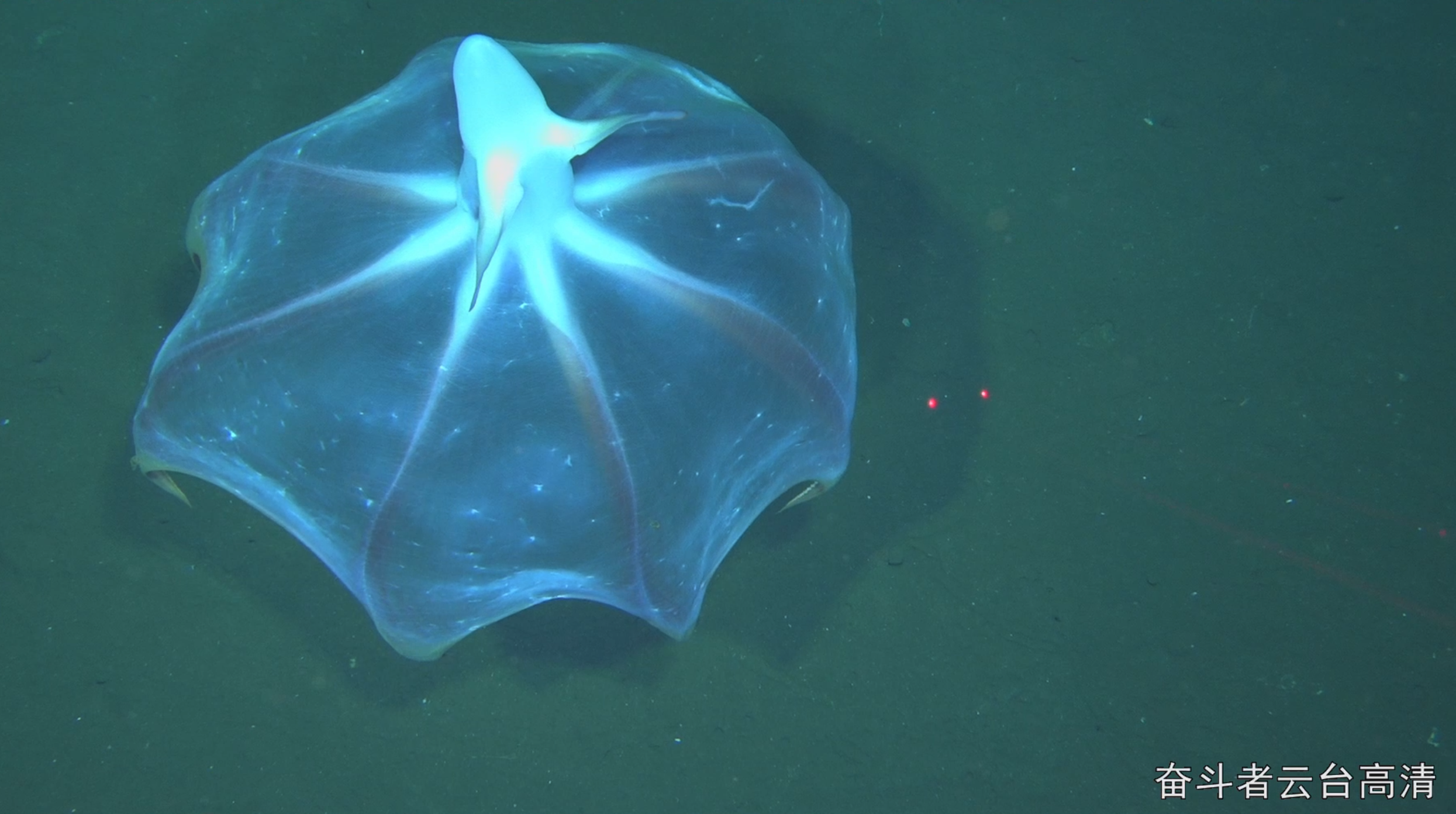 2月8日,“奮斗者”號在蒂阿曼蒂那海溝5500米深度發現飛象章魚
